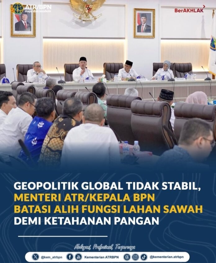 “Langkah ini menjadi krusial agar kebutuhan pangan rakyat tetap terpenuhi. Kita tidak boleh membiarkan lahan produktif hilang begitu saja di tengah ancaman krisis pangan dunia,” ujar Nusron Wahid.