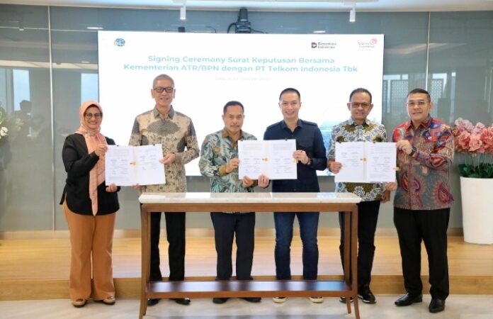 Kementerian Agraria dan Tata Ruang/Badan Pertanahan Nasional (ATR/BPN) bersama PT Telkom Indonesia membentuk Satgas Akselerasi Legalisasi dan Penyelesaian Kasus Aset Tanah Telkom 2026. Pembentukan Satgas disahkan melalui penandatanganan Surat Keputusan Bersama dengan disaksikan oleh Wakil Menteri (Wamen) ATR/Wakil Kepala (Waka) BPN, Ossy Dermawan dan Direktur Utama PT Telkom Indonesia, Dian Siswarini pada Jumat (20/02/2026), di Gedung Telkom Hub, Jakarta.